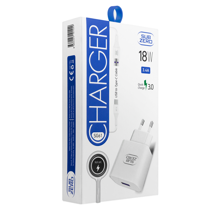 TOPTAN - Subzero SG61 3.4A Type-C Şarj Seti 18W